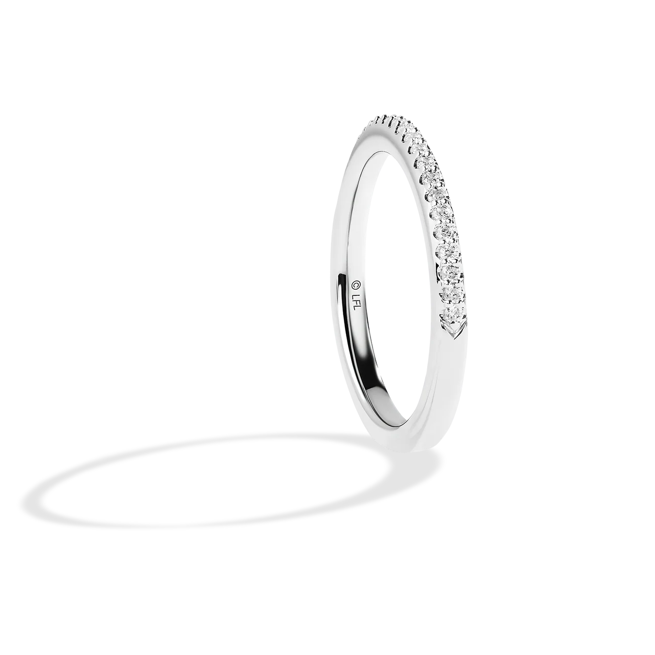Guardians of Light women's wedding band made in 14k white gold with white diamonds.